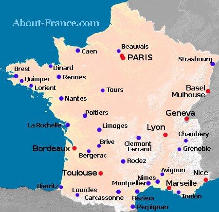 Os residentes franceses reservam como outros, férias para a cidade do amor (Paris) e para a bela costa (Côte d'Azur) como é mencionado no mapa dos aeroportos na França. Muitos dos aeroportos franceses estão localizados perto do Mar Mediterrâneo. No entanto, os maiores aeroportos estão situados nos arredores de Paris. Paris Charles de Gaulle Airport e Paris Orly Airport são os dois aeroportos mais movimentados da França. No entanto, os outros aeroportos em França também se tornam cada vez mais populares devido ao aumento das transportadoras de baixo custo